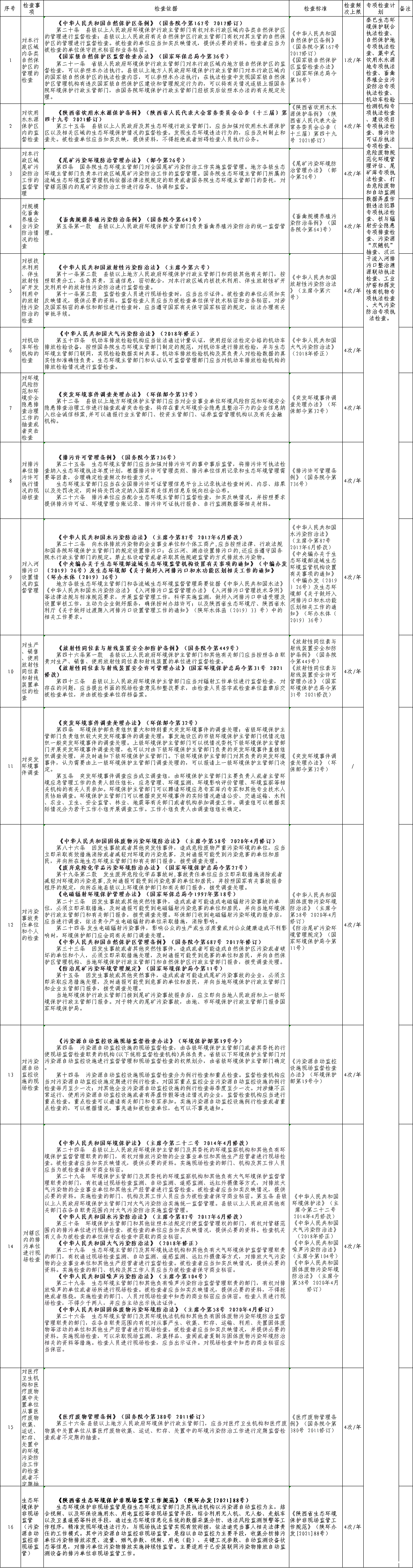 汉中市生态环境局西乡分局涉企行政检查事项目录