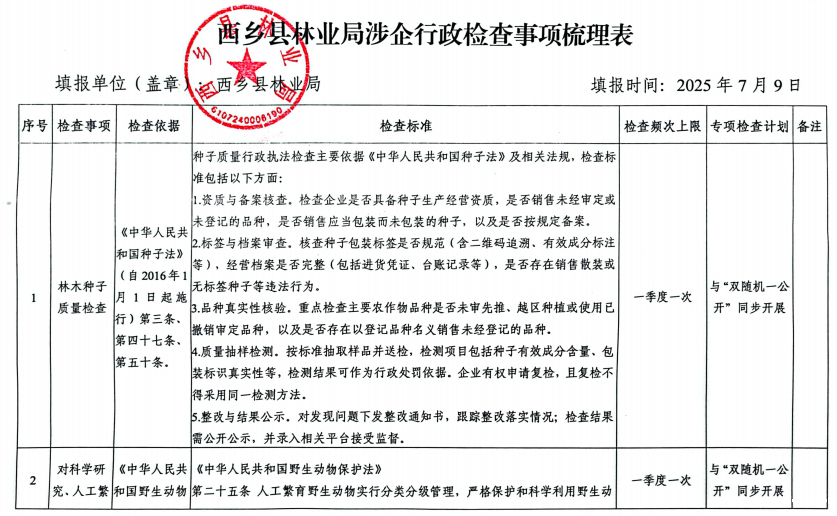 星空体育下载地址手机版林业局涉企行政检查事项目录
