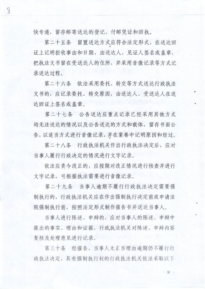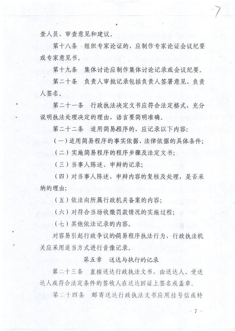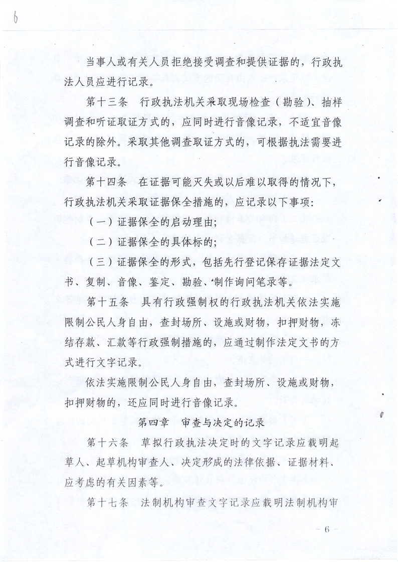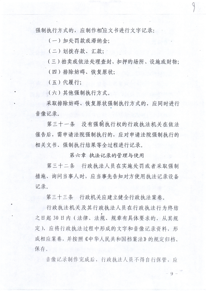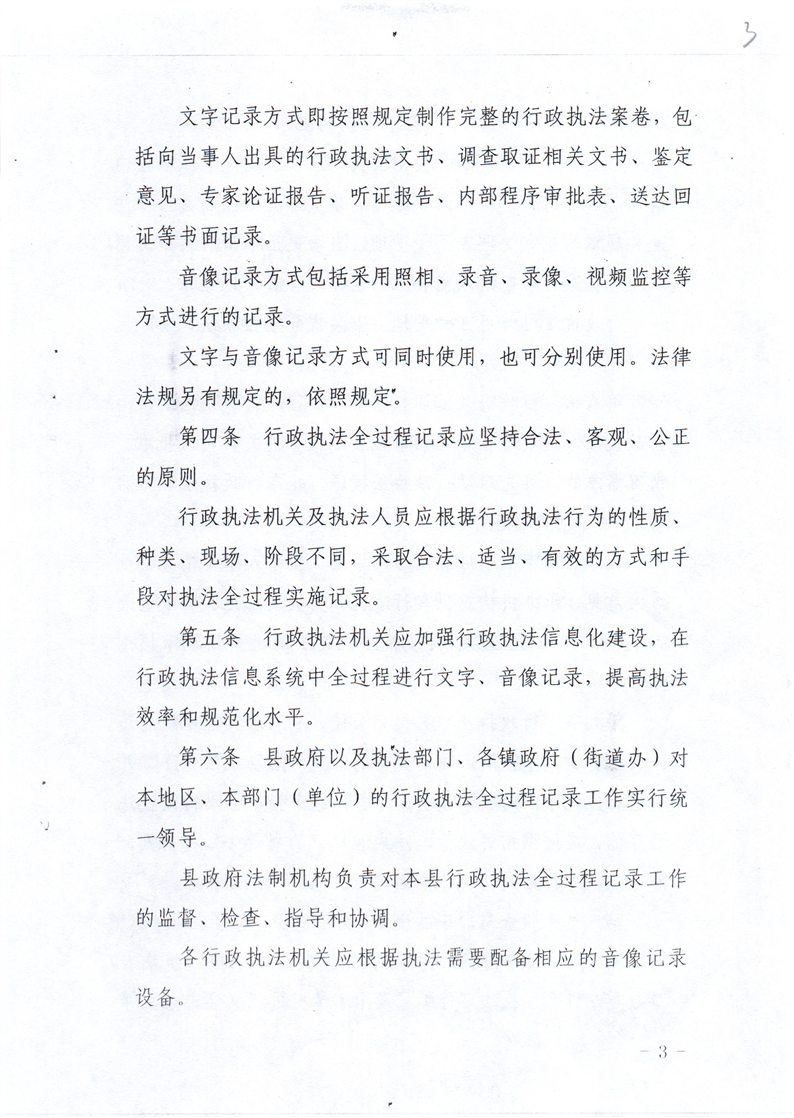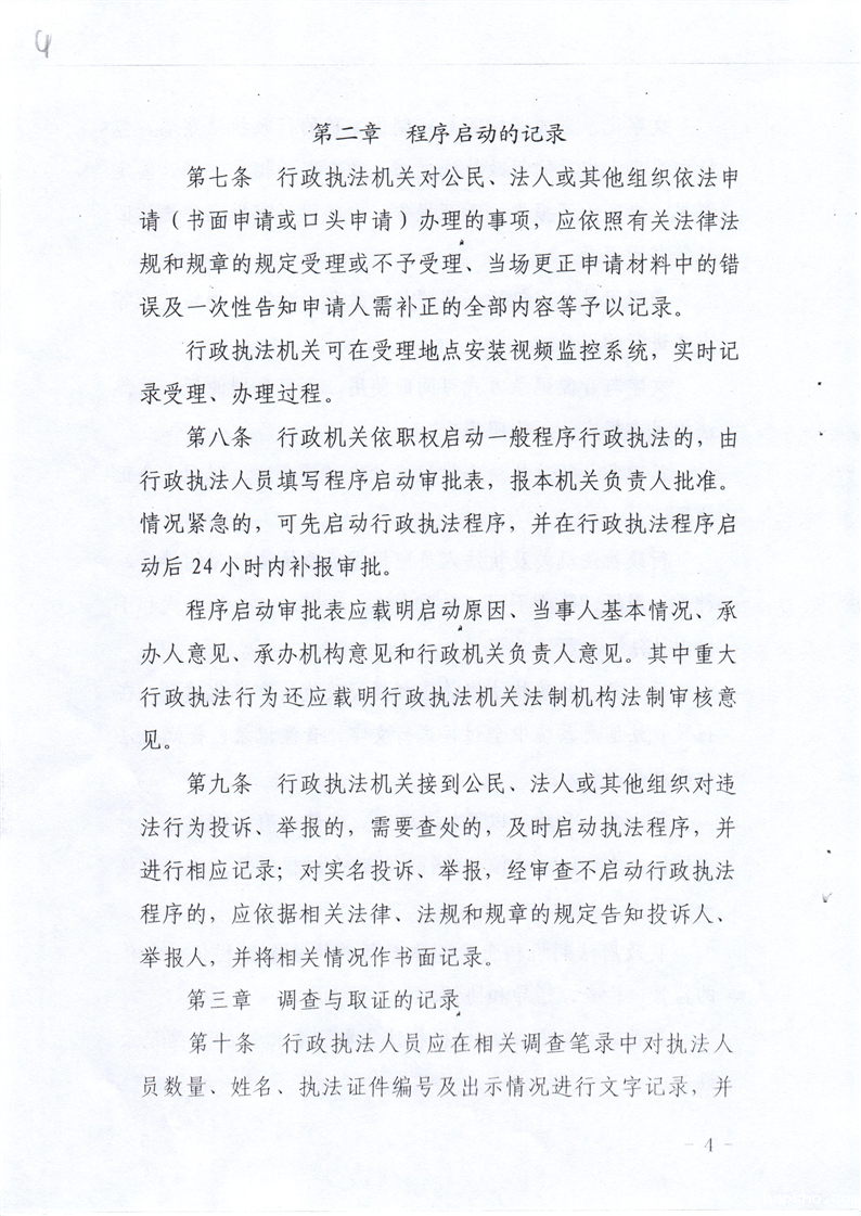行政执法机关通过文字、音像等记录形式,对行政执法启动、调查取证、审核决定、送达执行等实现全过程记录,并实现全面系统归档保存,做好执法全过程留痕和可回溯管理