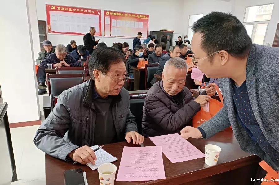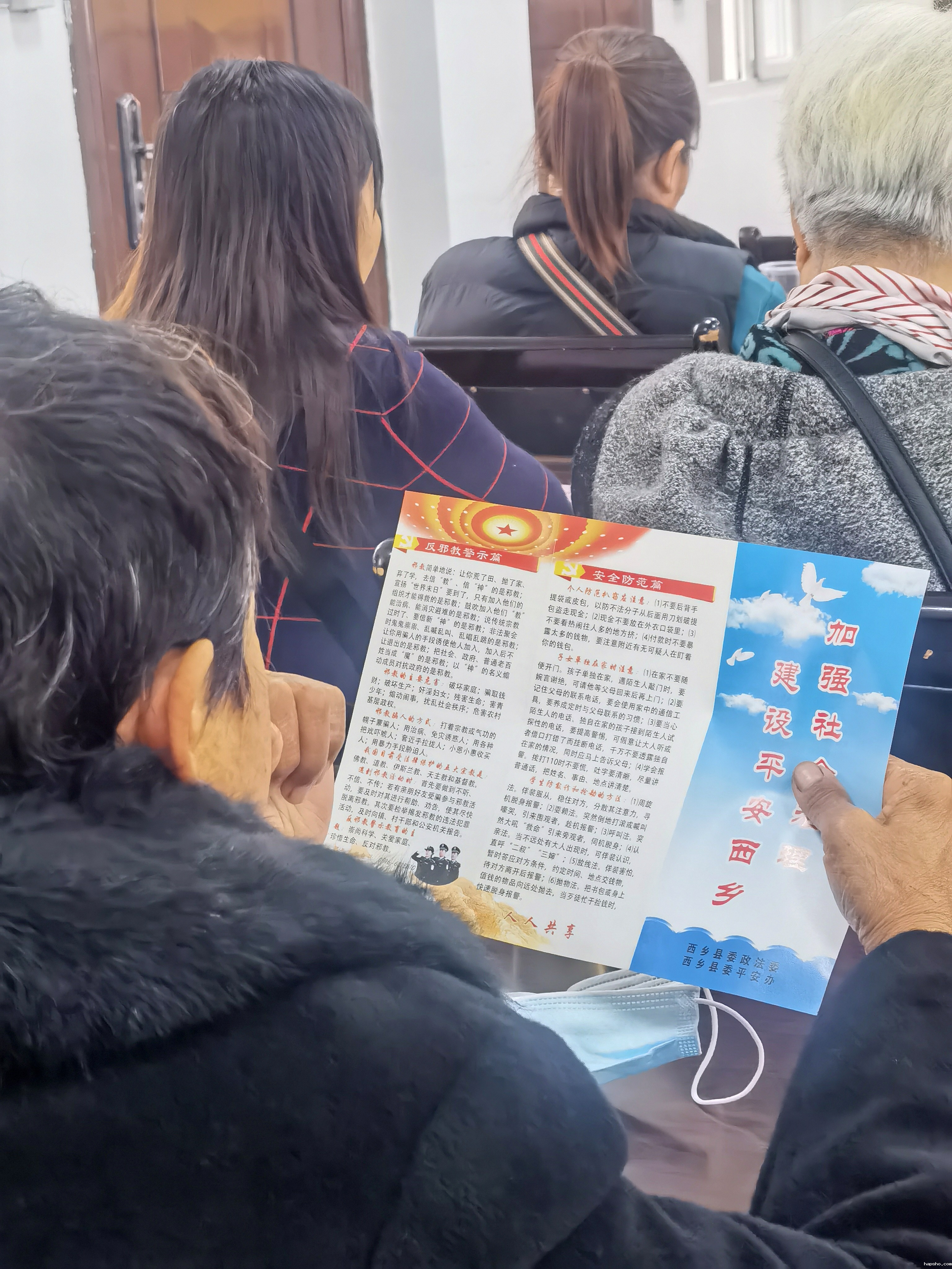 认真阅读平安宣传折页的参会群众