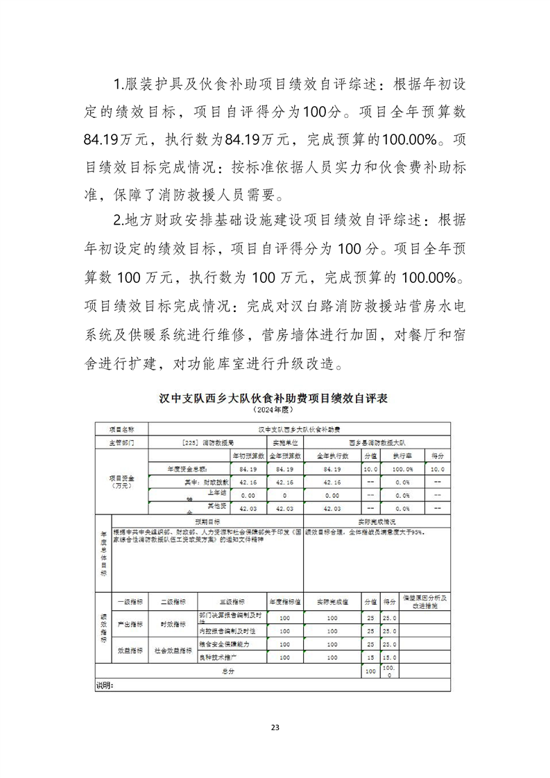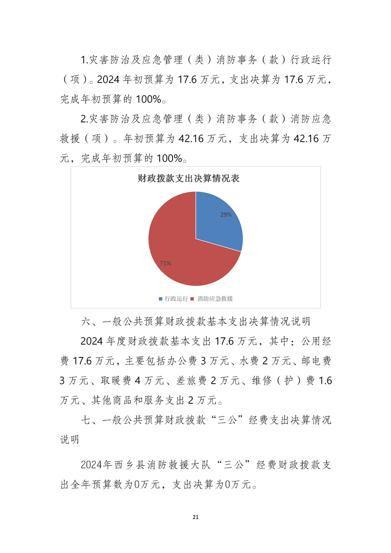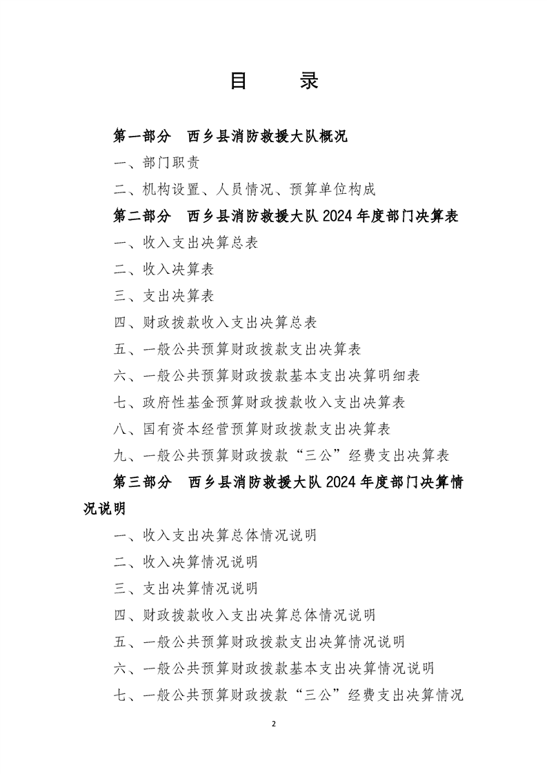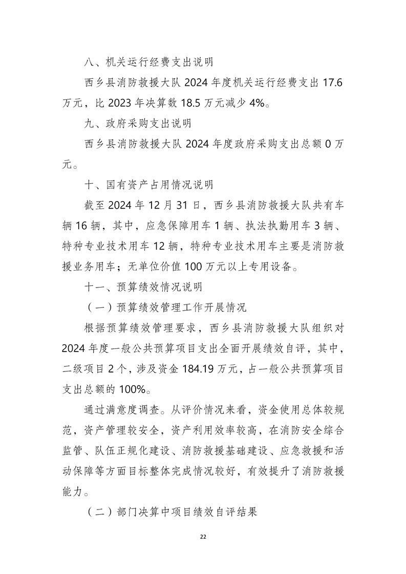 汉中市消防救援支队西乡大队2024年度部门决算公开
