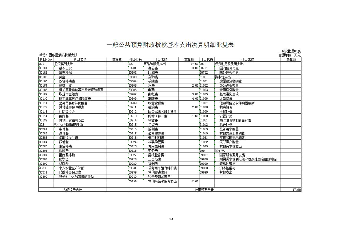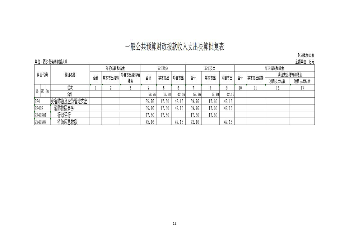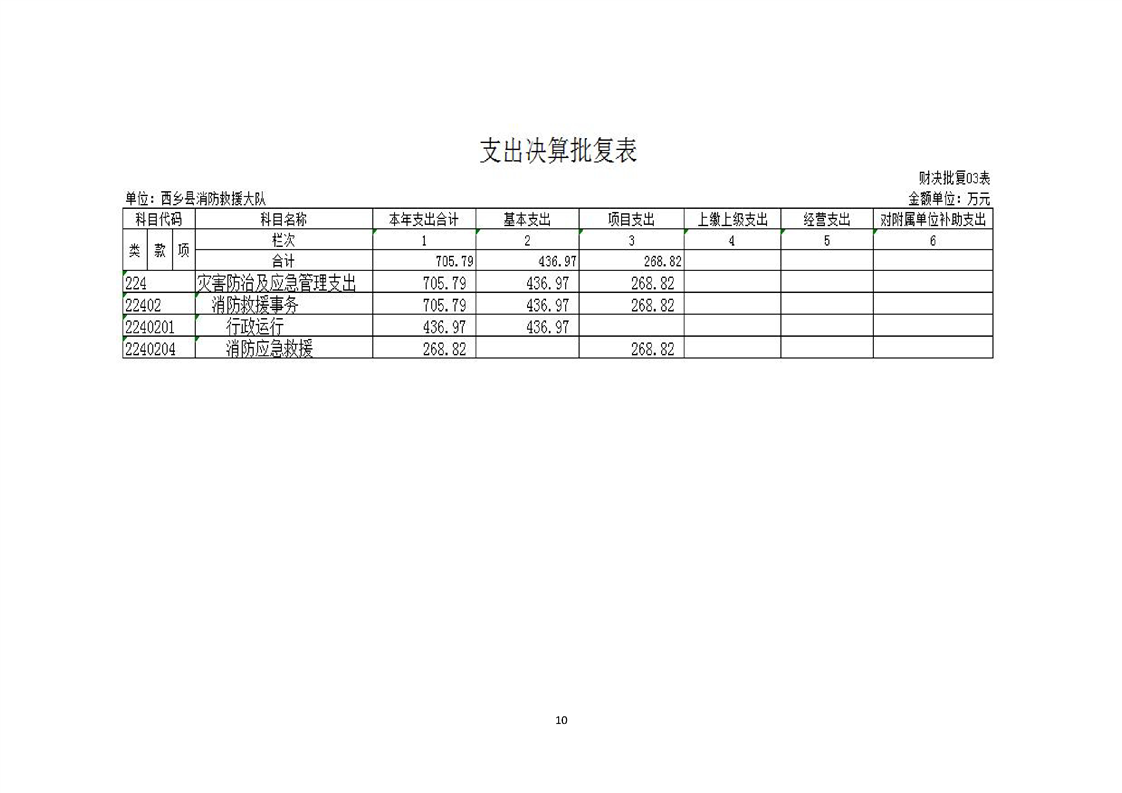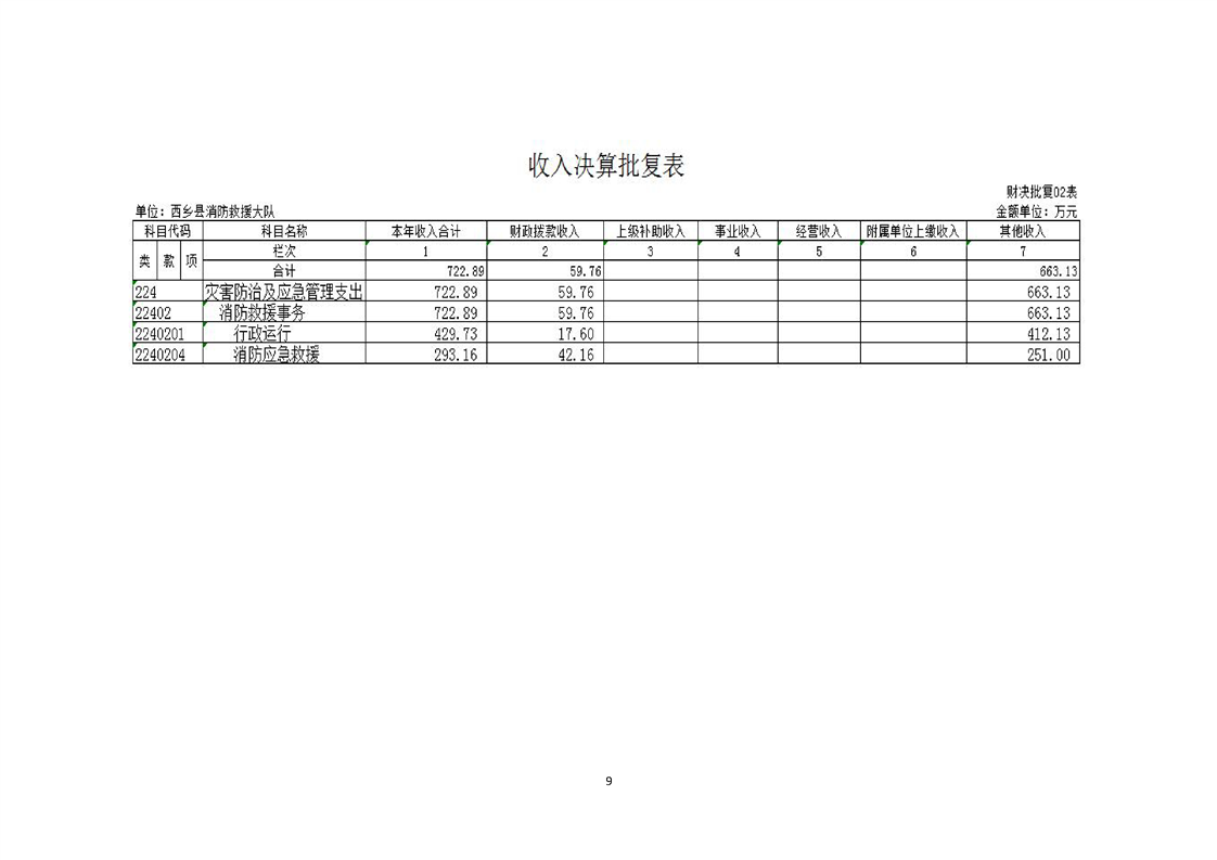 汉中市消防救援支队西乡大队2024年度部门决算公开