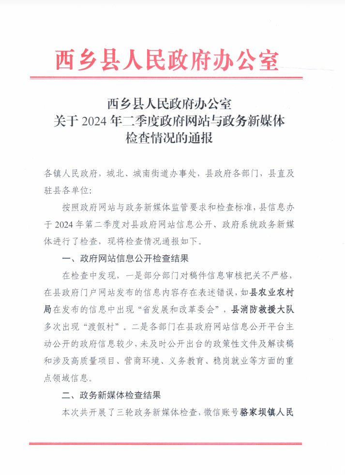 星空全新正版下载app办公室关于2024年二季度政府网站与政务新媒体检查情况的通报