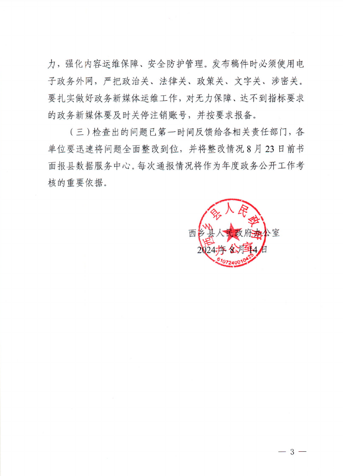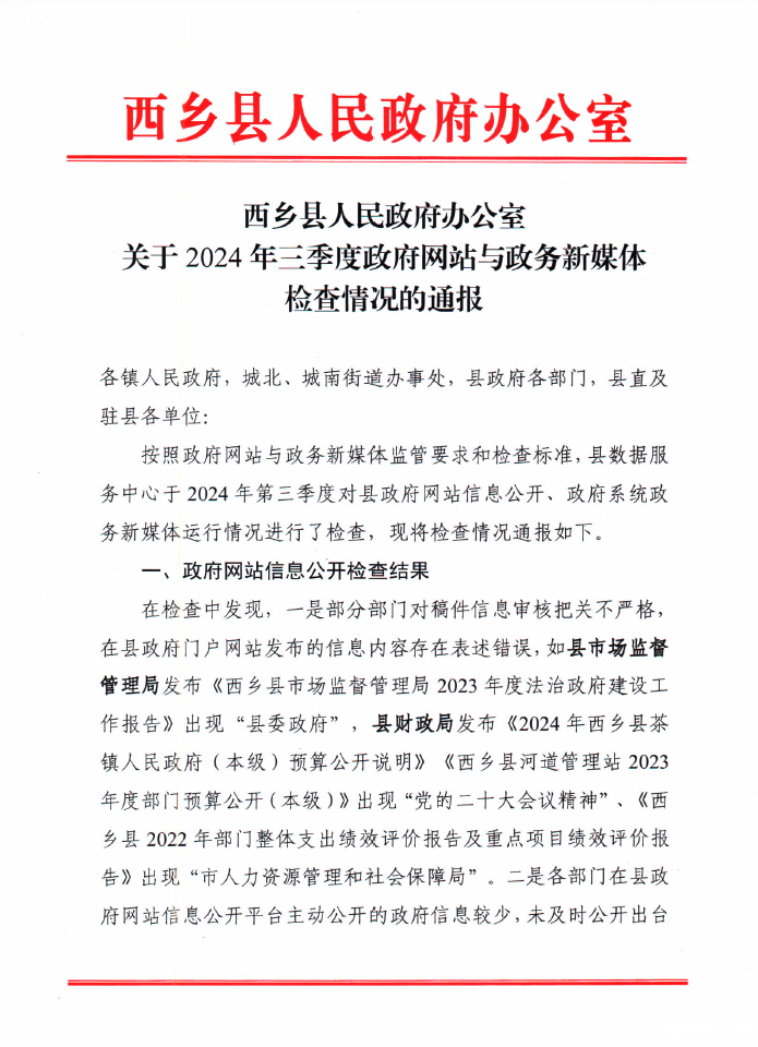 星空全新正版下载app办公室关于2024年三季度政府网站与政务新媒体检查情况的通报