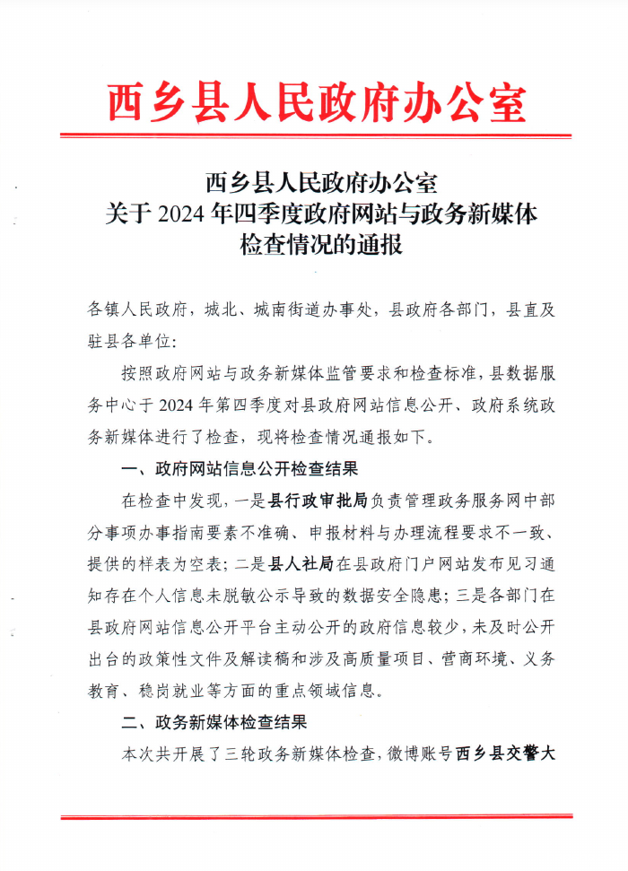 星空全新正版下载app办公室关于2024年四季度政府网站与政务新媒体检查情况的通报