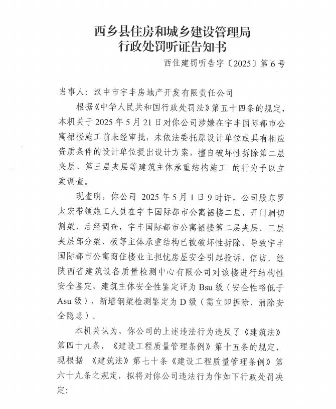 星空体育下载地址手机版住房和城乡建设管理局行政处罚听证告知书