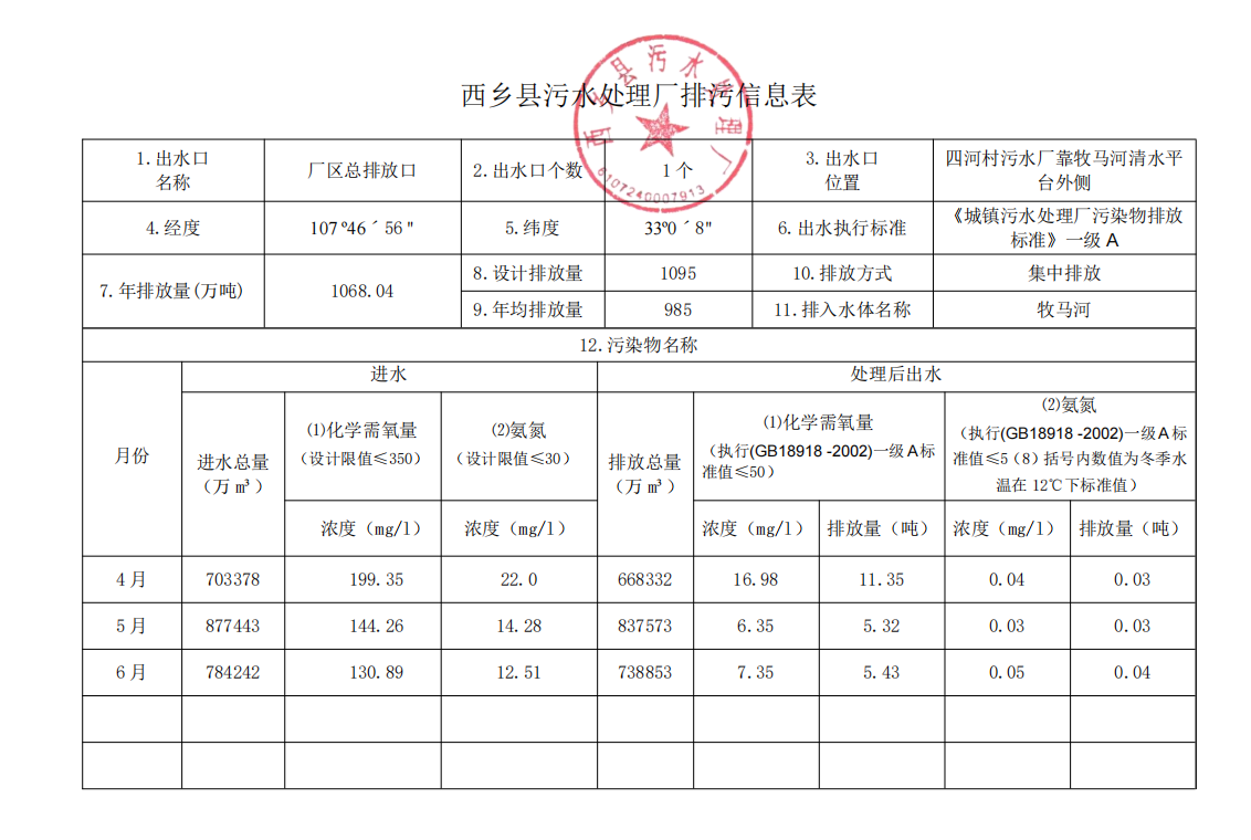 星空体育下载地址手机版污水处理厂排污信息表(2023年第二季度)