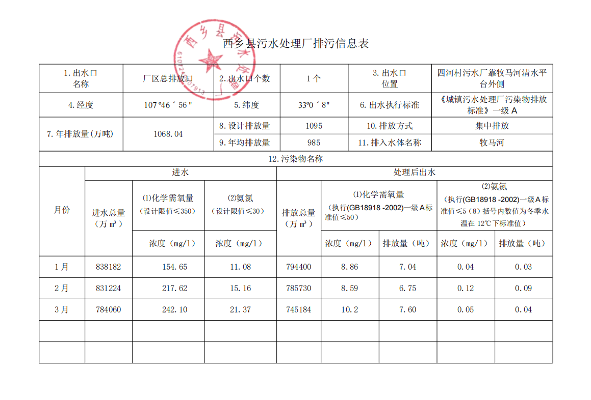 星空体育下载地址手机版污水处理厂排污信息表(2023年第一季度)