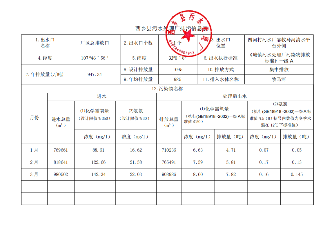 星空体育下载地址手机版污水处理厂排污信息表(2024年第一季度)