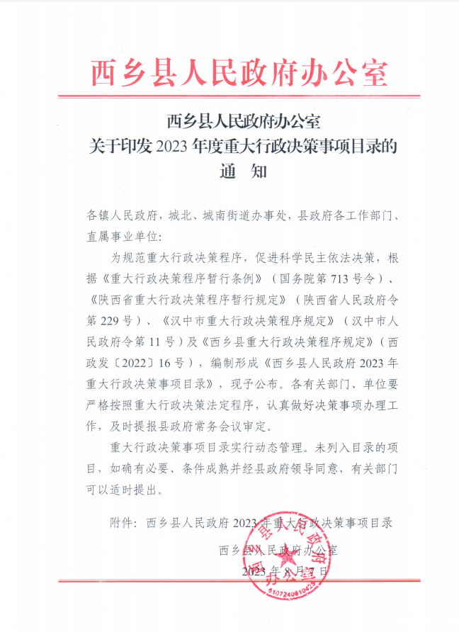 星空全新正版下载app办公室关于印发2023年度重大行政决策事项目录的通知